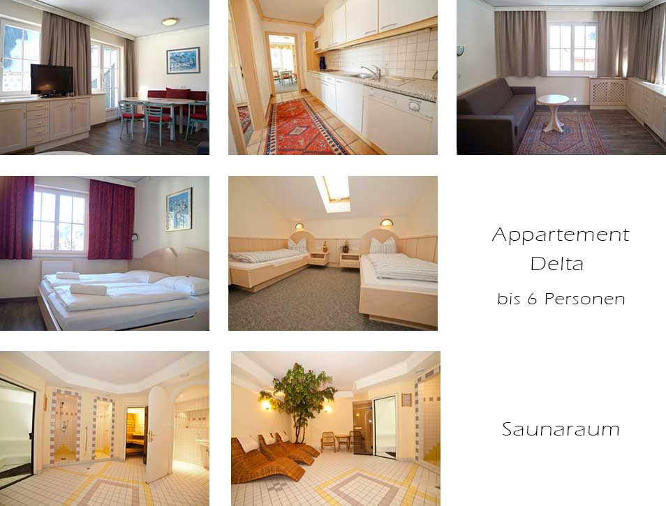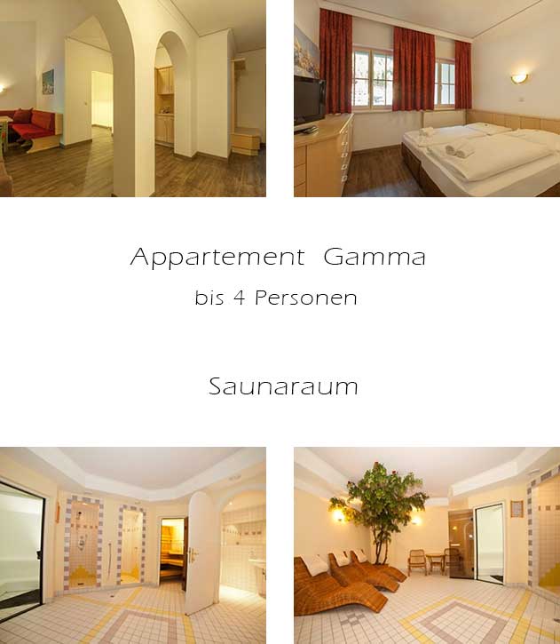 Die Residenz Solaris verfügt über zehn Appartements für drei bis sechs Personen. Die freundlichen Räume und die gute Ausstattung der Appartements machen das Wohlfühlen leicht. Alle Appartments sind funktionell und feriengerecht eingerichtet.Das gesamte Appartementhaus wurde im Herbst 2016 umfassend renoviert. Im Haus stehen ein Skikeller mit Skischuhtrockner sowie ein Wellnessbereich mit kleiner Sauna, Dampfbad und Ruhebereich zur Verfügung. Appartement Sigma für 3 Personen offener Wohnschlafbereich für 3 Personen (Doppelbett und Schlafcouch), Essecke, separate Küchenzeile, Bad mit Doppelwaschbecken und Badewanne, separates WC. Beispielbilder hier klicken Appartement Alpha 52 für 4 Personenca. 52 qm, 1 x Doppelzimmer mit Fenster zum Wohnraum, Wohn-/Schlafraum mit Doppelcouch und Essecke, offene Küche, Bad mit Doppelwaschbecken und Badewanne, separates WC. Bilder hier klicken Appartement Alpha 62 für 4 Personen ca. 62 qm, offener Wohnschlafbereich für 4 Personen (Doppelbett und Schlafcouch), offene Küche mit Essbereich, Bad mit Doppelwaschbecken, Dusche und WC. Bilder hier klicken Appartement Beta für 3 Personen, mit Balkon ca. 47 qm, 1 x Doppelzimmer, 1 x Einzelzimmer, Bad mit Doppelwaschbecken, separates WC, offene Küche, Balkon. Bilder hier klicken Selbstverpflegung.