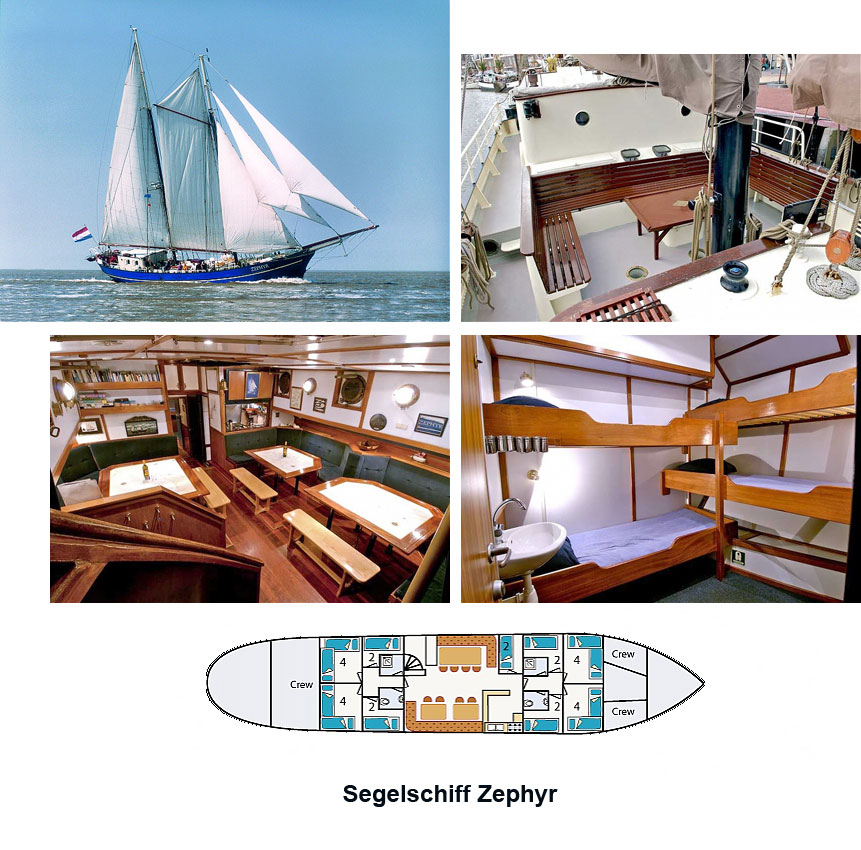 •  oder Zweimastschoner Zephyr, max. 24 Personen