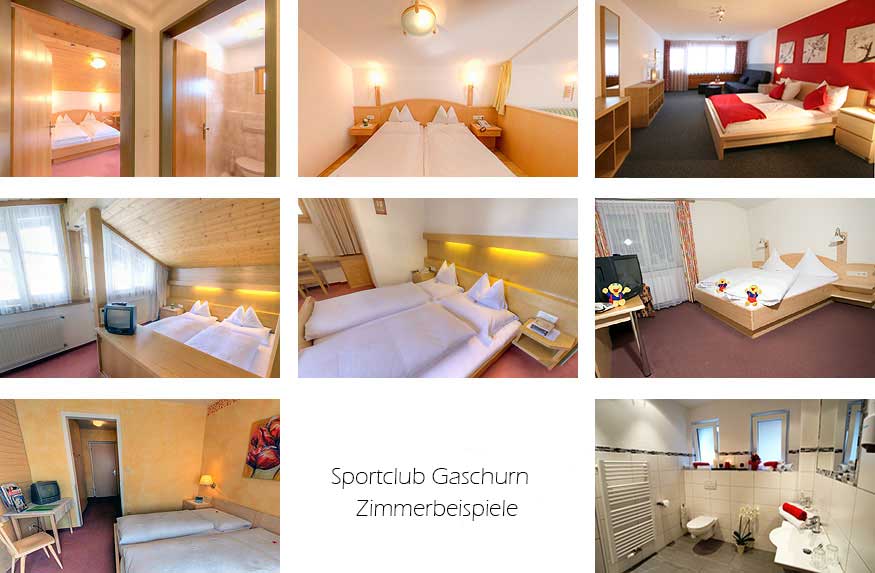 Der Sportclub Montafon bietet insgesamt 44 Zimmer. Es stehen Einzel- und Doppelzimmer sowie Mehrbett- und Familienzimmer zur Verfügung, die überwiegend mit Du/WC und Balkon ausgestattet sind. Für die Kinder können einige Doppelzimmer mit Zustellbetten ausgestattet werden.