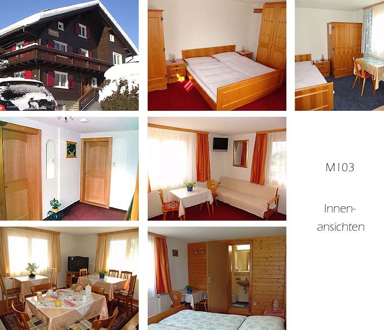 M103 – TschaggunsFrühstückspension Lage: gute, ruhige Lage nur ca. 3 Gehminuten vom Ortszentrum mit Geschäften und Restaurants entfernt. Der kostenlose Skibus ist ebenfalls 3 Gehminuten entfernt und erreicht in ca. 5 Fahrminuten die Hochjochbahn und Golmbahn, in ca. 10 Fahrminuten die Silvretta Montafon. bis zu 2 x Doppelzimmer und 2 x Dreibettzimmer, Innenbilder bitte klicken mit Du/WC, Kabel-TV, inklusive Frühstück. Handtücher und Bettwäsche inklusive. Haustier nicht erlaubt. Kinderermäßigung je nach Alter 0-3 Jahre 25 % 4-11 Jahre 15 % 12-15 Jahre 10% für weitere Termine/Quertermine bitte hier klicken  M120Z – TschaggunsFrühstückspension Lage: ruhige Lage, ca. 10 Gehminuten zum nächsten Restaurant und Lebensmittelgeschäft, ca. 8-9 Gehminuten zum Skibus, kurze Anfahrt zum Sessellift Grabs, ca. 3 km zur Ortsmitte Schruns. bis zu 2 x Doppelzimmer, Innenbilder bitte klicken, auf Anfrage auch dreibettig möglich, mit Du/WC, tlw. mit Balkon, Sat-TV im Aufenthaltsraum, inklusive Frühstück. Handtücher und Bettwäsche inklusive. Haustier nicht erlaubt. Verpflegung