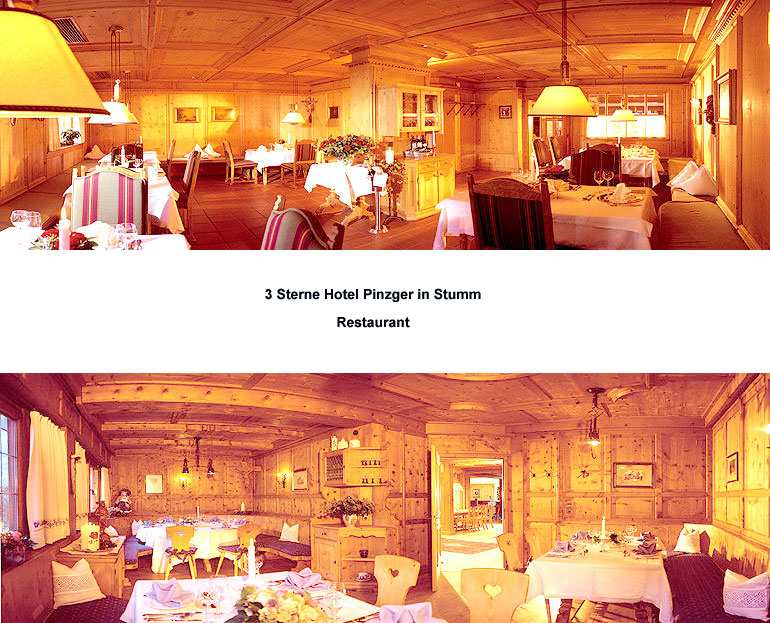 Morgens können sich die Gäste am reichhaltigen Frühstücksbuffet bedienen, abends werden sie mit einem 5 Gang Menü (2 Haupgtgänge sowie vegetarische Variante wählbar) verwöhnt, inklusive Salatbuffet. Am Nachmittag zwischen 15.00 und 17.00 Uhr wird eine Skifahrerjause in Form eines Jausenbuffet gereicht. Bilder Hotel in Stumm: Restaurant. |