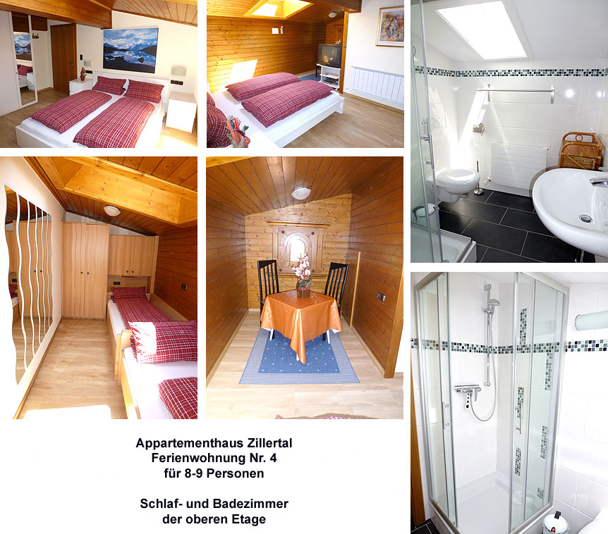 Alle Schlafzimmer in dieser Wohnung sowie die beiden Bäder und das WC wurden 2011 aufwendig renoviert und erstrahlen in neuem Glanz. Bild 1: Appartementhaus Zillertal - Ferienwohnung 4 (9 Personen) Bild 2: Appartementhaus Zillertal - Ferienwohnung 4 (9 Personen) Bild 3: Appartementhaus Zillertal - Ferienwohnung 4 (9 Personen) Internet - WLAN