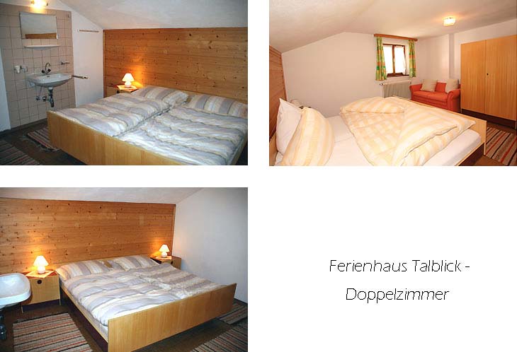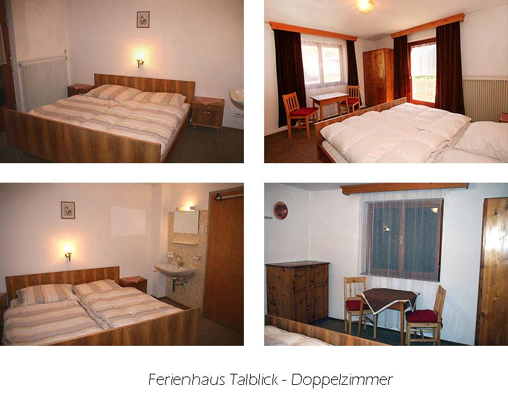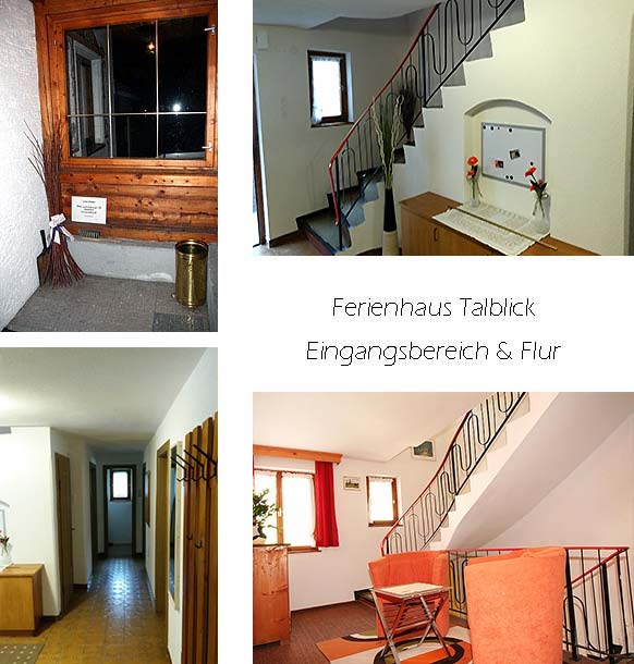 Unser Ferienhaus Talblick liegt zentral in Flirsch und ist eine ehemalige Frühstückspension, die jetzt als komplettes Ferienhaus (Selbstverpflegung) angeboten wird. Das Haus verfügt über eine einfache, zweckmäßige Ausstattung, sehr viele Schlafzimmer (5 Doppel- und 5 Einzelzimmer), viele davon mit Waschbecken. Zusätzlich sind 2 Zustellbetten (Klappbetten) vorhanden. Unseren Gästen steht ein hauseigener Parkplatz für ca. 4-5 PKW sowie eine Garage zur freien Nutzung zur Verfügung.Ab sofort ist in unserem Haus Talblick Wireless LAN kostenlos verfügbar. Aufteilung des Hauses: Parterre: kl. Windfang vor dem Eingang, geräumiger Flur, kl. Abstellraum mit Kühlschrank, Stube/Essraum für ca. 15 Personen, 1 Doppelzimmer, 1 Zimmer mit Etagenbett, 1 Einzelzimmer mit Waschbecken, 1 WC, 1 Bad mit Badewanne und Waschbecken, moderne Küche mit Geschirrspüler und Esstisch für 4-6 Personen. Bilder des Eingangsbereiches und Flurs