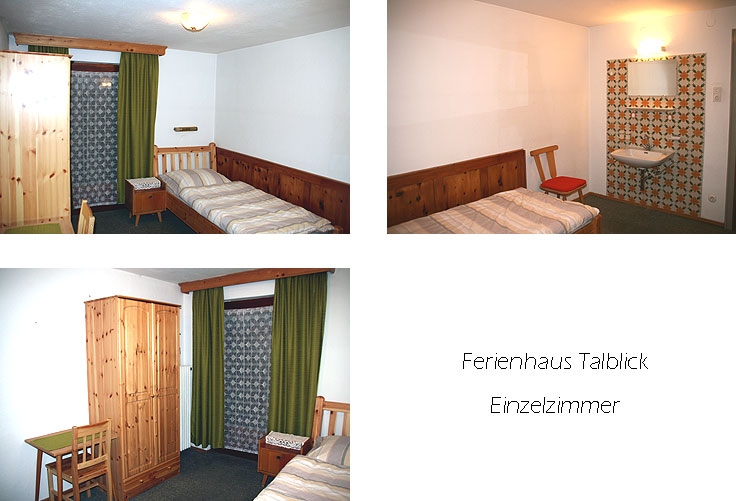 Bilder des Einzelzimmers Nr. 1 in der 1. Etage Bilder des Einzelzimmers Nr. 2 in der 1. Etage 2. Etage/Dachgeschoss: Die 2. Etage besteht aus einer separaten Ferienwohnung für 5 Personen. Wohnküche (Herd, Backofen, Kühlschrank) mit Essplatz für 4-6 Personen, 1 Doppelzimmer mit Waschbecken, 1 Doppelzimmer, 1 kleines Einzelzimmer, Dusche, sep. WC. Alle Zimmer mit leichten Dachschrägen. Von der Wohnküche und einem der Doppelzimmer Zugang zum Balkon mit sehr schönem Ausblick über das Tal. Bilder des Doppelzimmers Nr. 1 im Dachgeschoss Bilder des Doppelzimmers Nr. 2 im Dachgeschoss Bilder des Einzelzimmers im Dachgeschoss Bilder der Küche im DachgeschossKeller: Kellerraum mit Skiabstellmöglichkeit, Lagerraum/Vorratsraum. Das Haus ist auch im Sommer buchbar, Kurztermine möglich, für mehr Infos bitte hier klicken. Unser Ferienhaus Talblick ist rauchfrei! Verpflegung